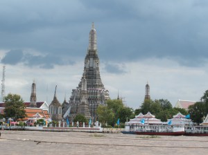 After Wat Po I took a bit of a detour on a Tuk Tuk to a large temple called the Golden Mount, which offers great views of the city. I was a bit worried about the Tuk Tuk but he didn’t rip me off in the end. He did try to take me to some tailor or other but I think it was pretty clear that I wasn’t in the market for a suit. The main disadvantage was that the roof was too low so I couldn’t see the city as easily as I would have liked. By the time I got back to the river the palace and the museum were both about to close so instead I crossed the river to see another temple, Wat Arun, which was apparently built on the site of king Tak Sin’s arrival when he established Bangkok as the new capital in the late 18th century.