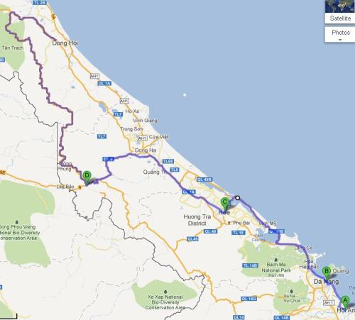 After spending an evening in Hoi An I took a leisurely drive up to Da Nang. Da Nang has a spectacular setting, with long, white sand beaches and the Truong Son mountain range looming behind. It is also one of Vietnam’s more attractive cities – the streets are wide, tree-lined and not overwhelmingly busy and the waterfront along the Han river has been done up nicely. There is some interesting architecture and a couple of impressive bridges. I met up with my friend John for a lunch which ended up extending long and boozily into the evening. As a result, I was unable to do a great deal the next day. I found a greasy fried breakfast in a bakery owned by some sort of religious lot – it’s called “Bread of Life” – and me sitting there with a foul hangover no doubt lowered the tone of the place. That afternoon I went to see a movie and then went to bed early. The next day John and I drove down the long beach towards Hoi An where we had lunch in a lovely, relaxed restaurant over-looking the sea. It was great being able to meet up with a friend after so many days on the road alone and with so many more ahead.