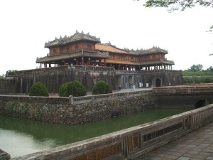 John and I had a nice dinner for my last night in Da Nang and though it wasn’t excessively alcoholic, I didn’t feel up to heading back onto the Ho Chi Minh highway and taking the long route to Hue. Instead I drove over the Hai Van pass as I had with Gregor last year, but got off highway one and took the provincial road running the other side of a large lagoon almost all the way to Hue. I didn’t actually see much of the sea. The road ran through sandy country with a few villages, thickets of scraggly conifers, and huge graveyards. The tombs were large and ornate and sometimes it felt like driving through a necropolis. I love the scenery in this part of the country. The landscape is quintessential Vietnam – dark mountains, emerald rice paddies cut by broad rivers and interspersed with snug villages and coconut palms. Even the houses seem less ugly than other parts of the country. Hue is also one of my favourite places, and I stayed a day to wander round the citadel and see how much progress had been made on the reconstruction projects.